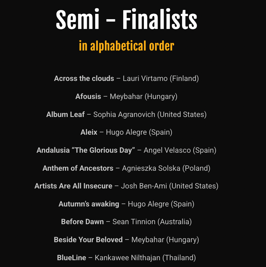 - Semi-finalist Official Selection : Apollo Global Music Awards, Greece (2025)